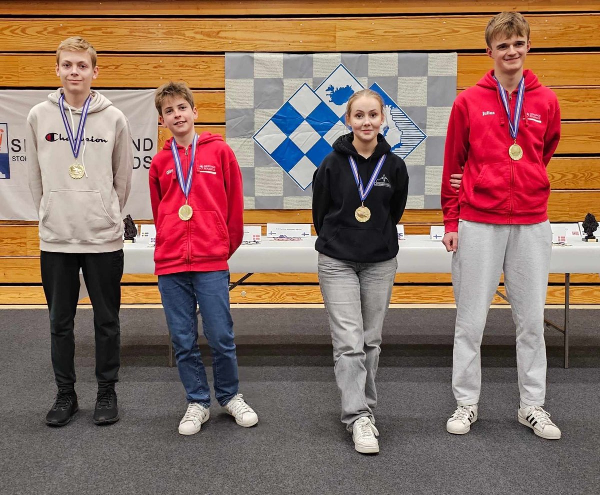 Þau Adam og Iðunn eru bæði byrjuð í menntaskóla en mótið hefur alltaf verið opið 17 ára og yngri. Þetta var því í síðasta sinn sem þau kepptu á skákmóti fyrir hönd skólans og hafa þau sannarlega staðið sig vel á þeim vettvangi. Jósef bróðir Adams er í 7. bekk og Jón Loie í 6. bekk.